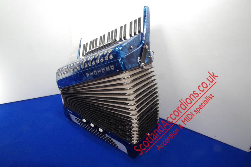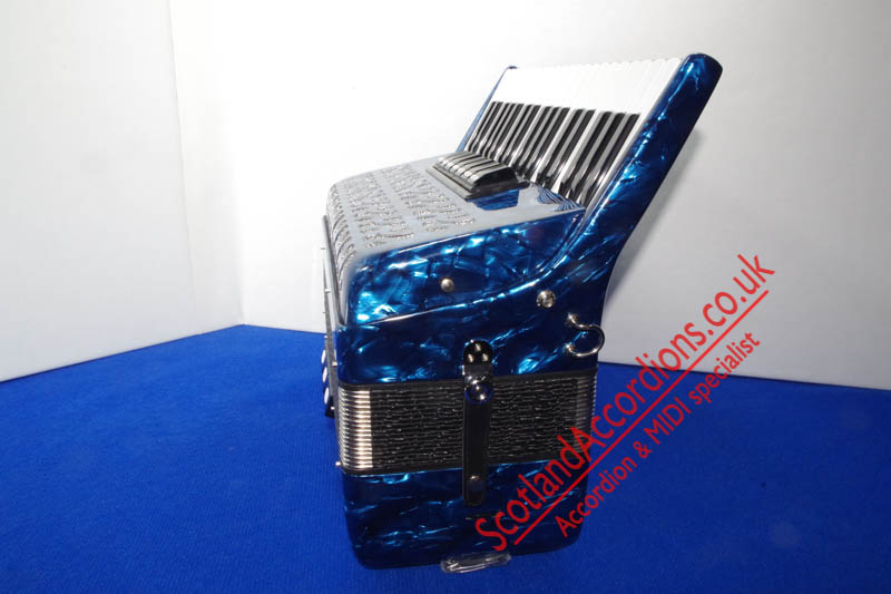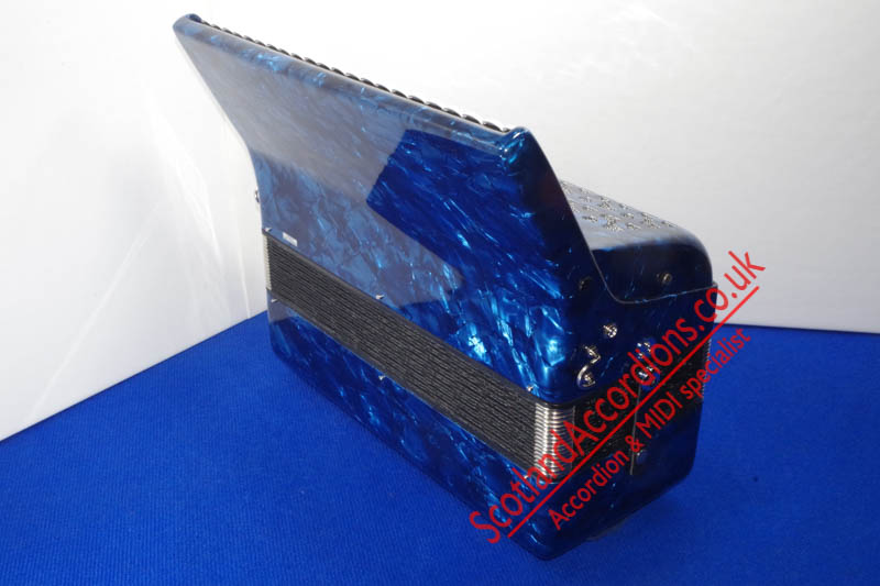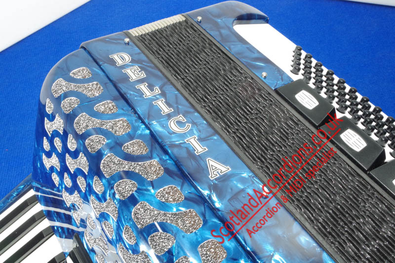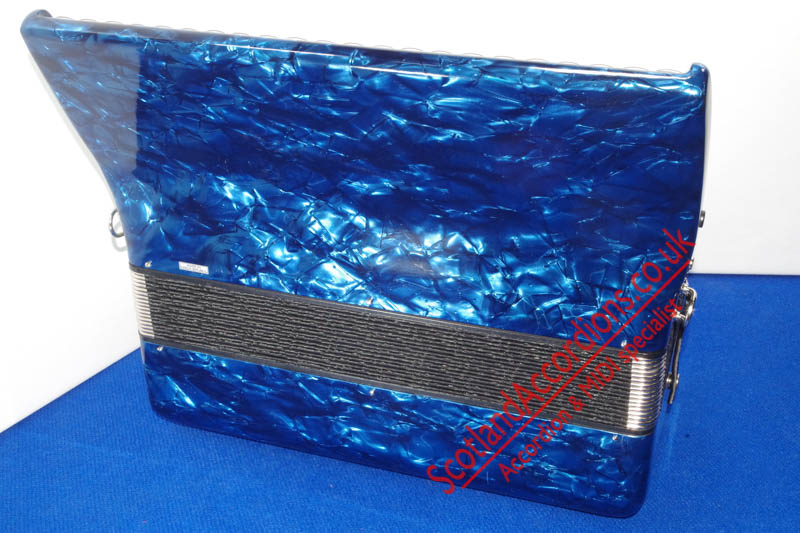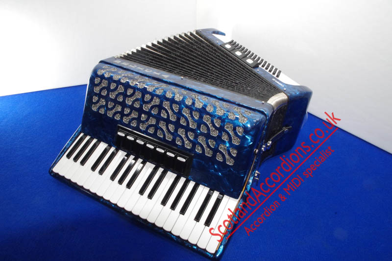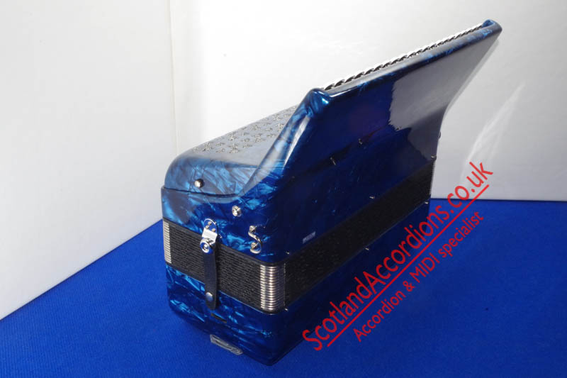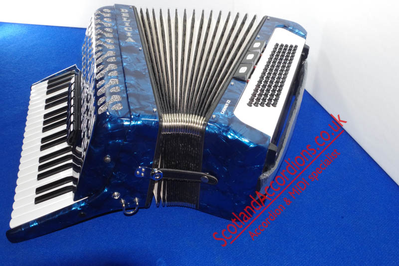 Scotlandaccordions are pleased to present Delicia 37 key 80 bass accordion finished in blue and in excellent unmarked condition and reportedly not played.
