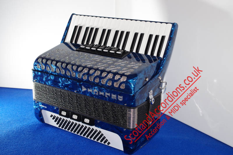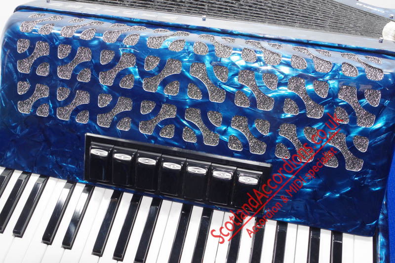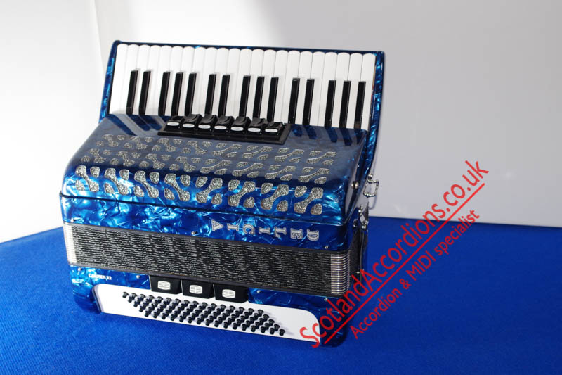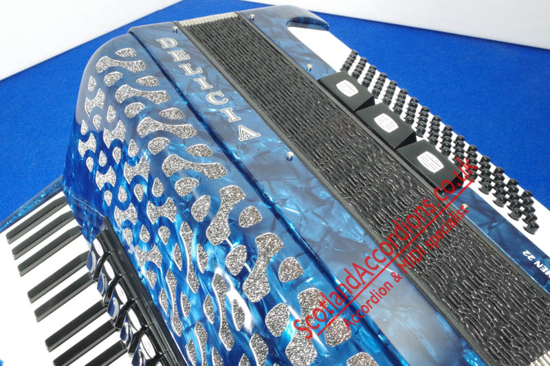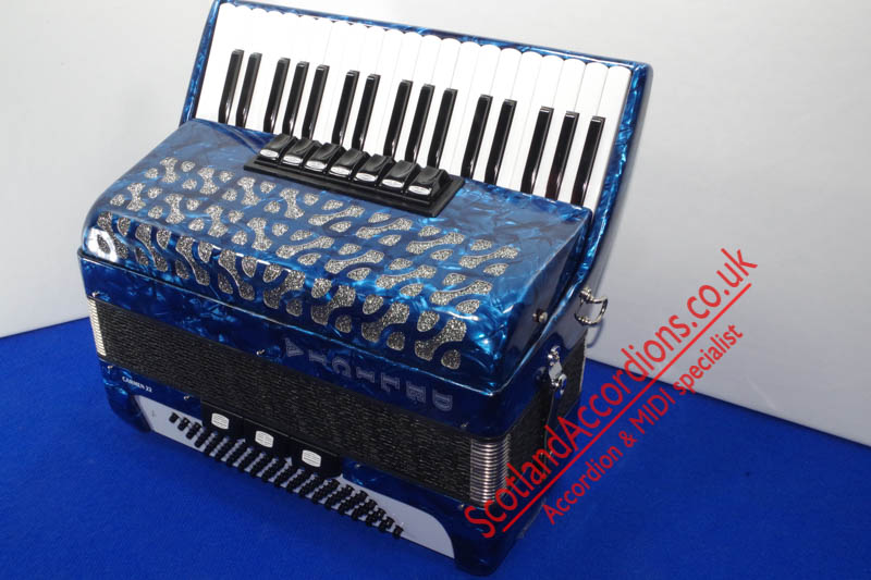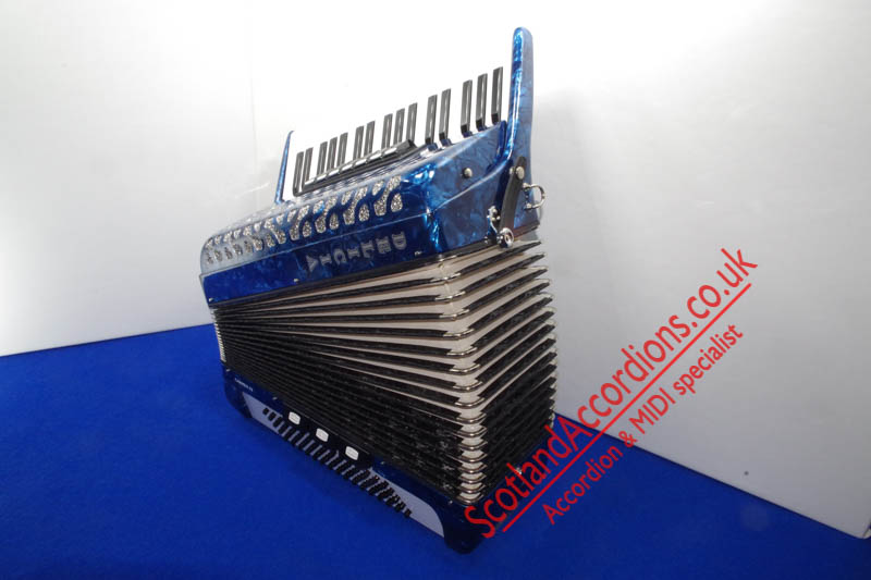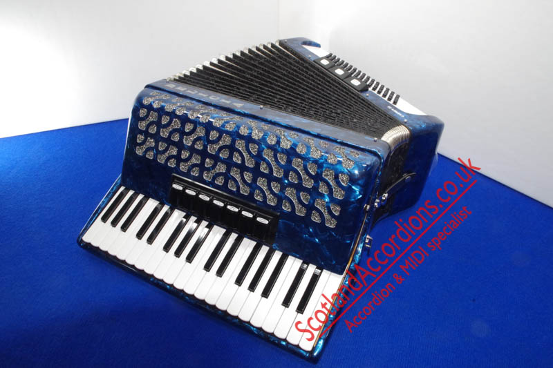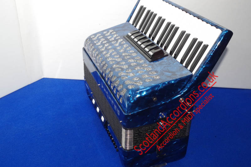 Scotlandaccordions are pleased to present Delicia 37 key 80 bass accordion finished in blue and in excellent unmarked condition and reportedly not played.
