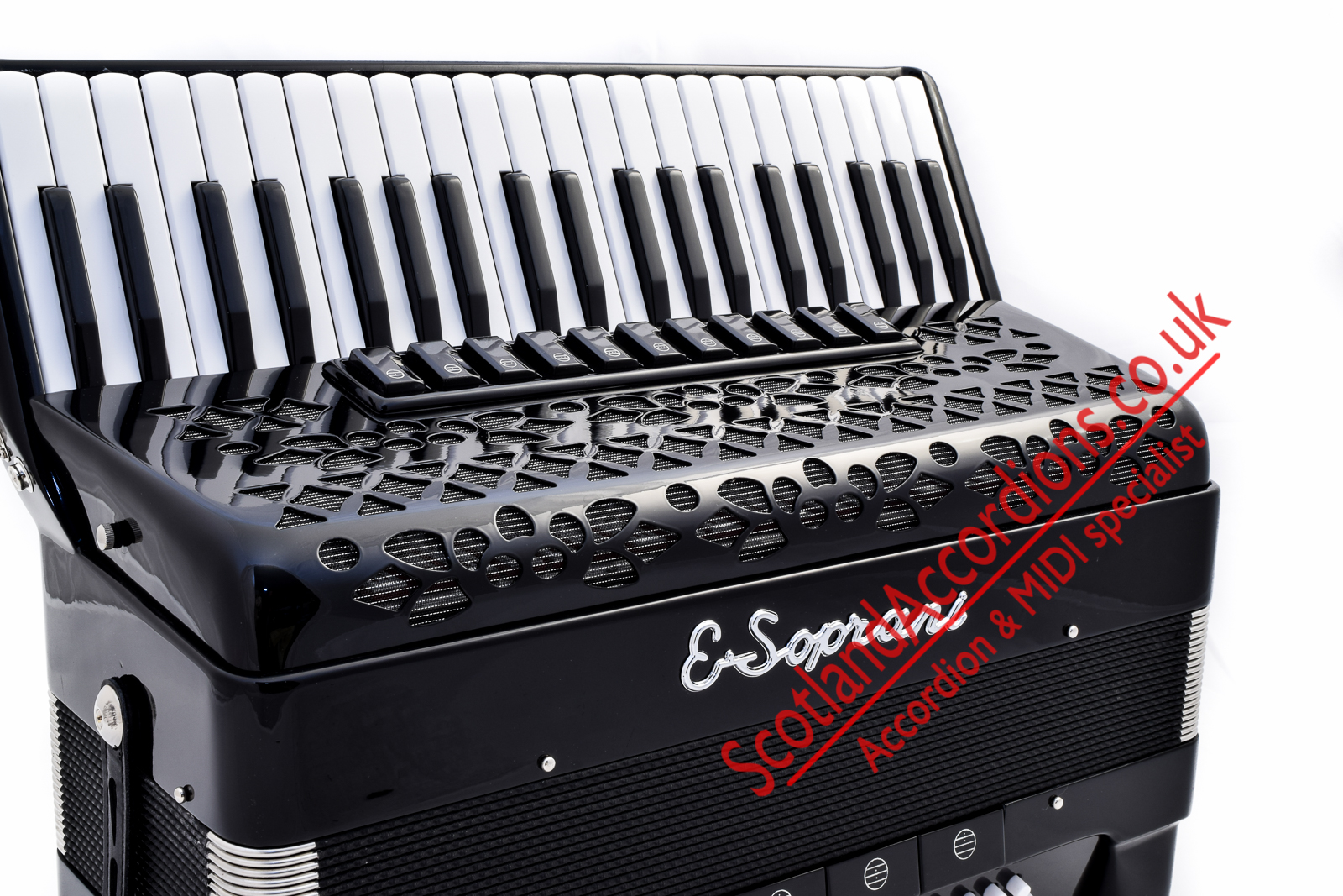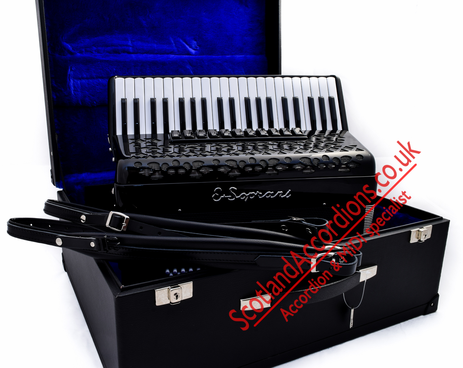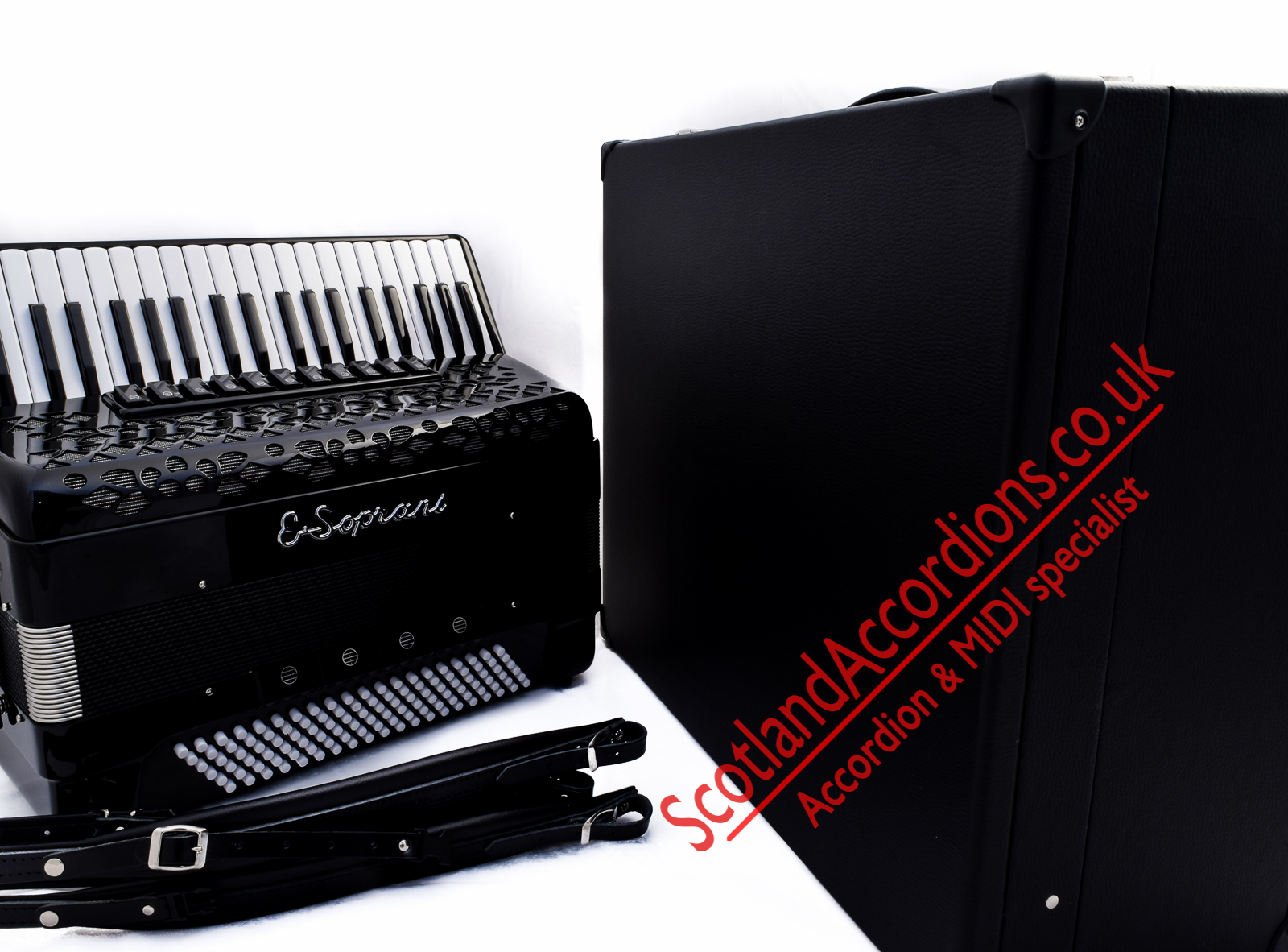 This full size 4 voice 41 key 120 bass musette tuned accordion offers excellent value. E Soprani is an Italian maker of accordions based in Castelfidardo Italy. It is a long established name of good repute.