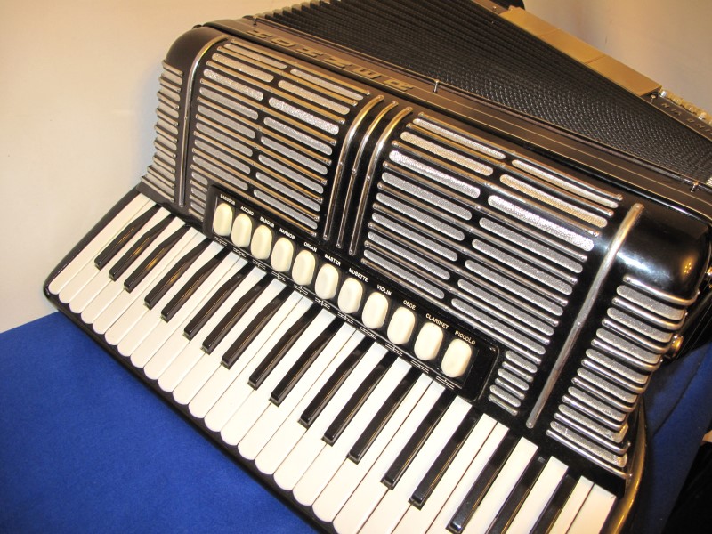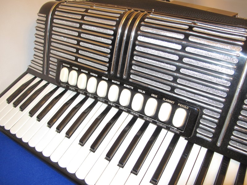 11 Grille mounted treble couplers, separate treble couplers on rear of accordion