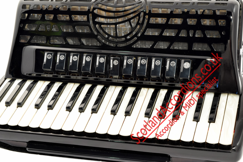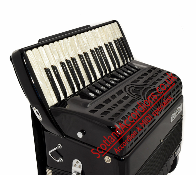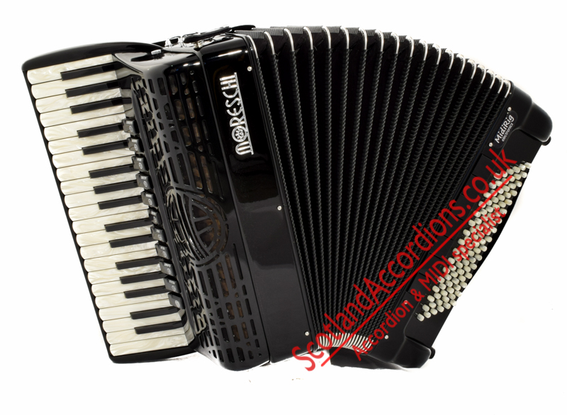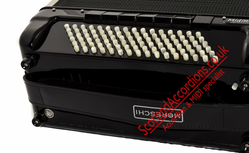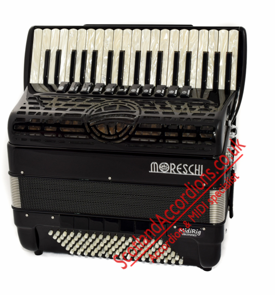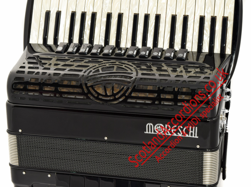 Moreschi Masterpiece IV 37 key 96 bass 4 voice black piano accordion with cassotto, double octave tuned, with wireless MIDI