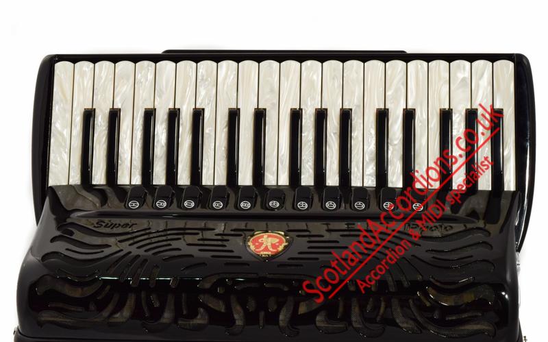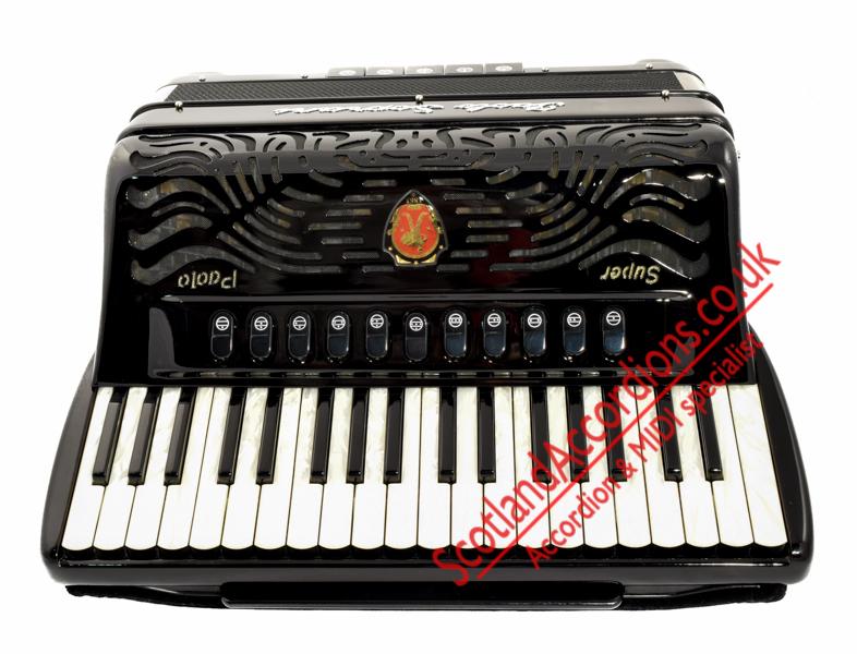 Superb sound from hand made (a mano) reeds and tone chamber. This model is musette tuned and you can play in contrasting styles with either the musette reeds or the rounded richer sound of the cassotto reeds. It is in the currently popular 37 treble keys and 96 bass format, and is thus easier to handle than traditional 41 key instruments while still having the note range required for most music. Made in Castelfidardo, Italy by the oldest Italian accordion maker, Paolo Soprani.