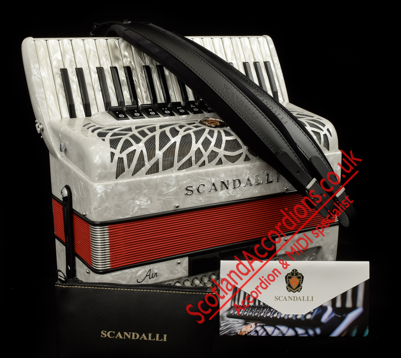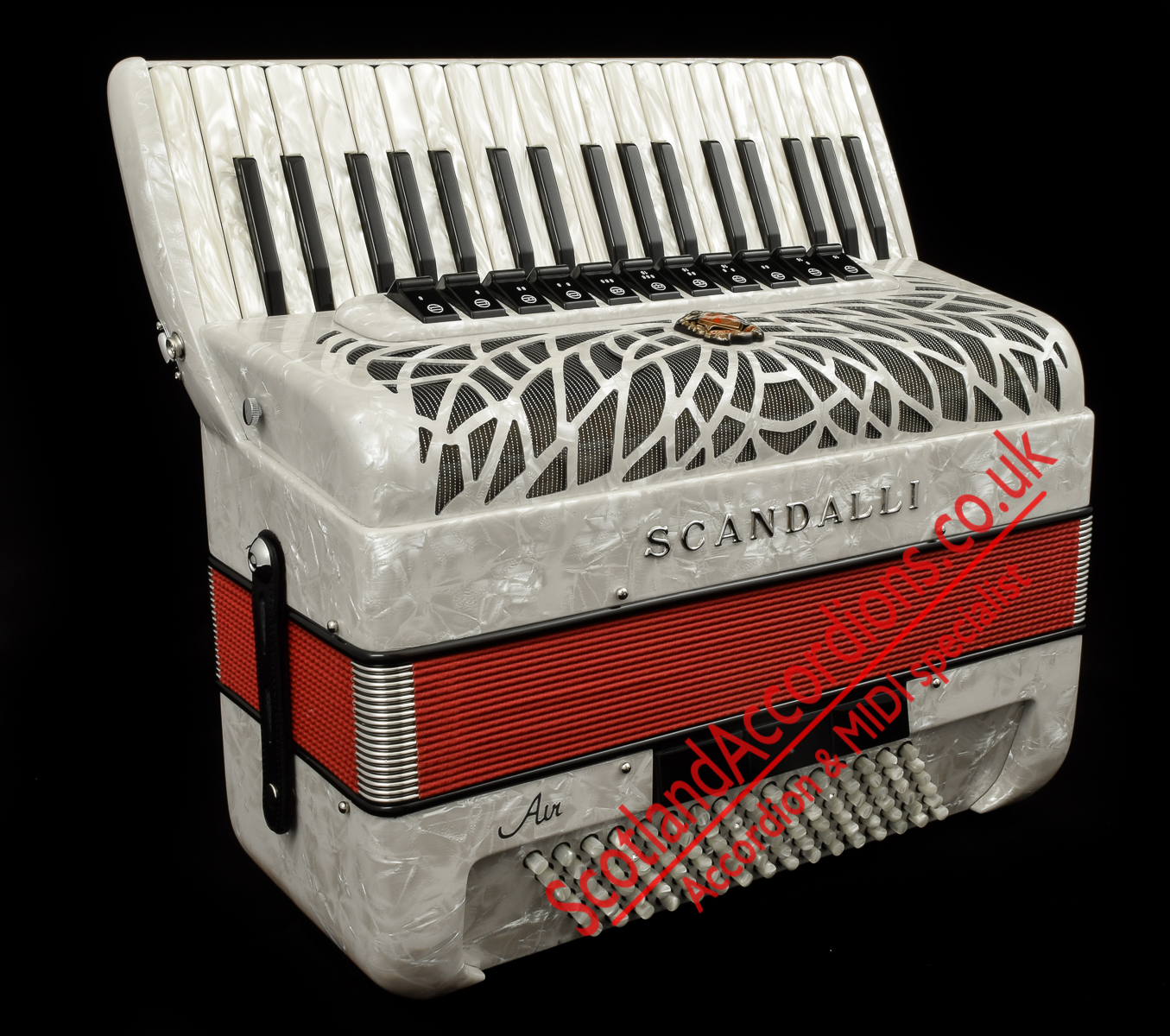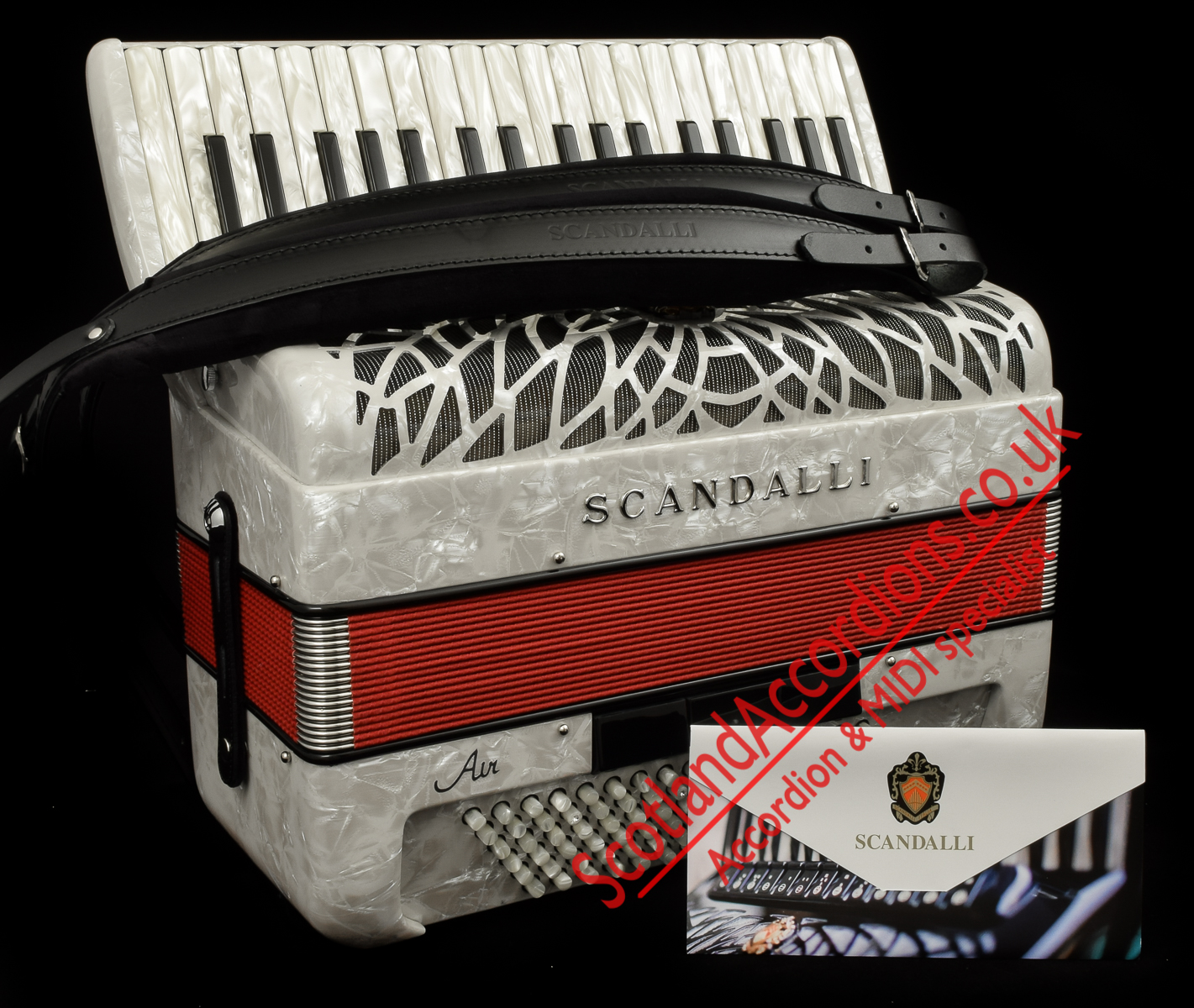 The Scandalli Air 1 model is their latest design with a very high build quality and superb sound. This model is an attractive 37 key 96 bass accordion. It is a 4 voice musette tuned model.