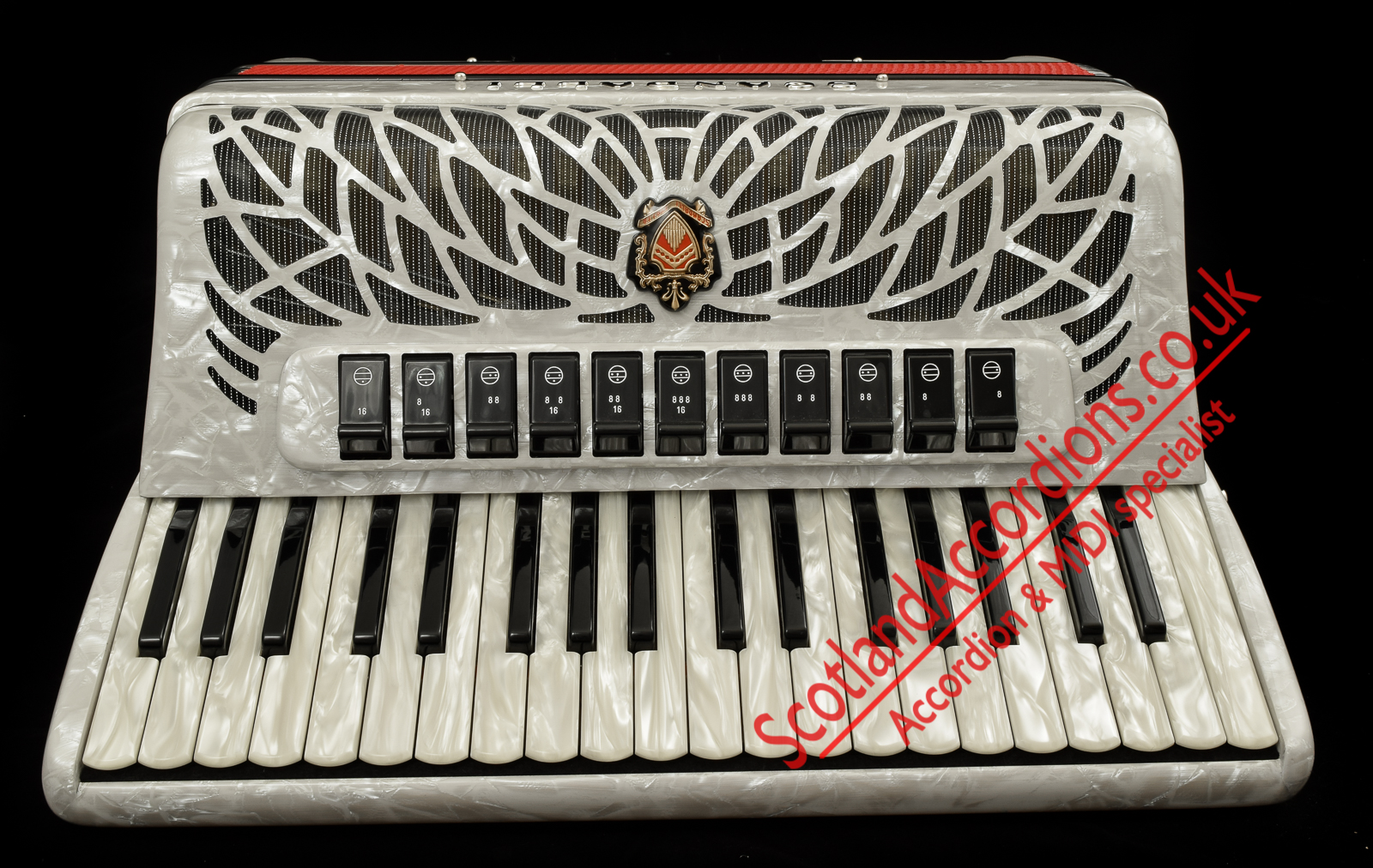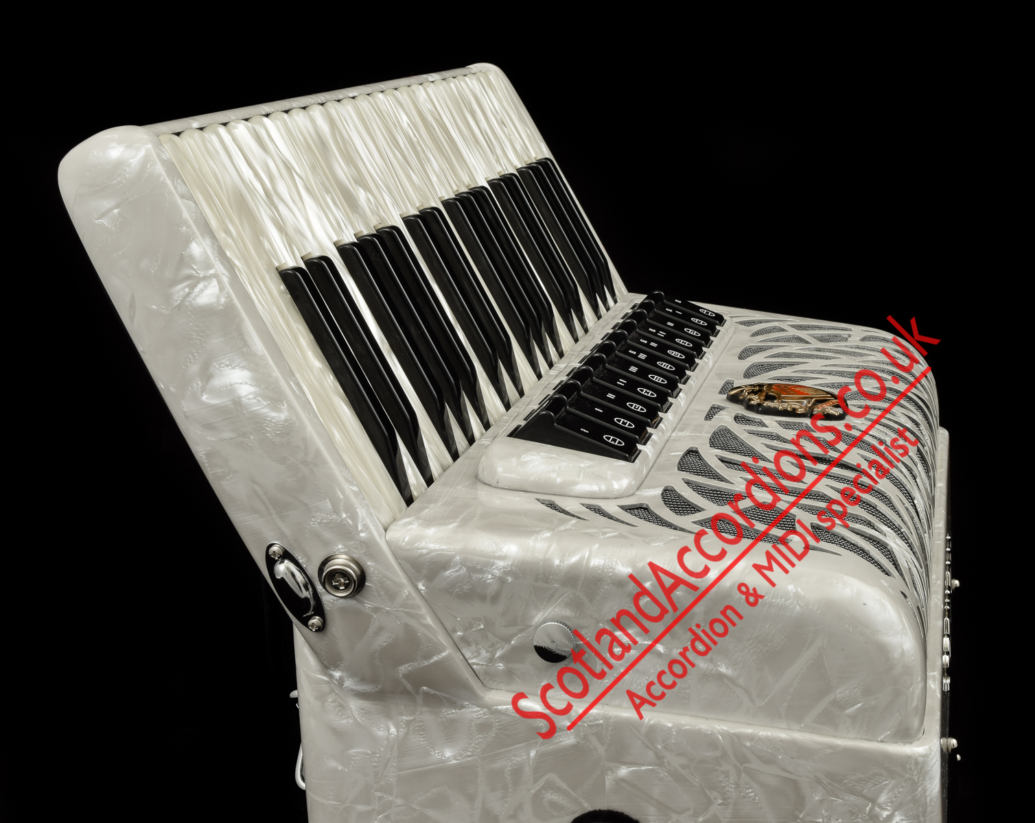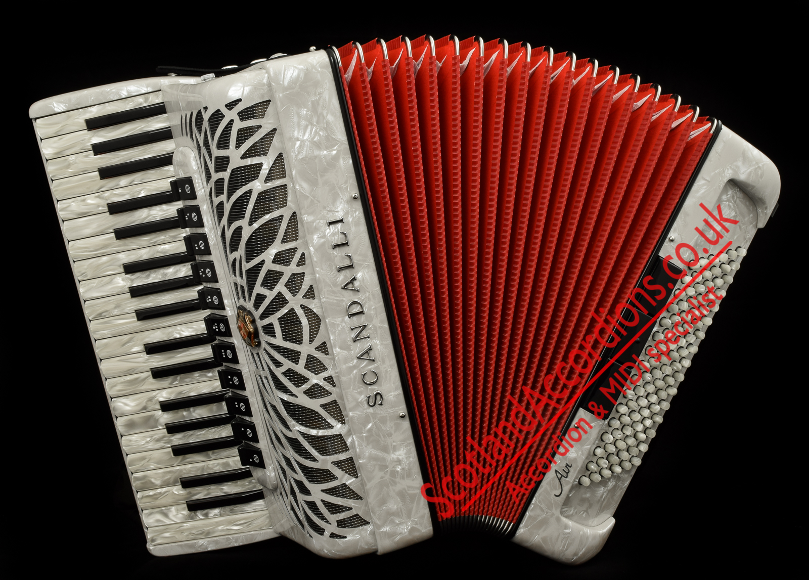 The Scandalli Air 1 model is their latest design with a very high build quality and superb sound. This model is an attractive 37 key 96 bass accordion. It is a 4 voice musette tuned model.