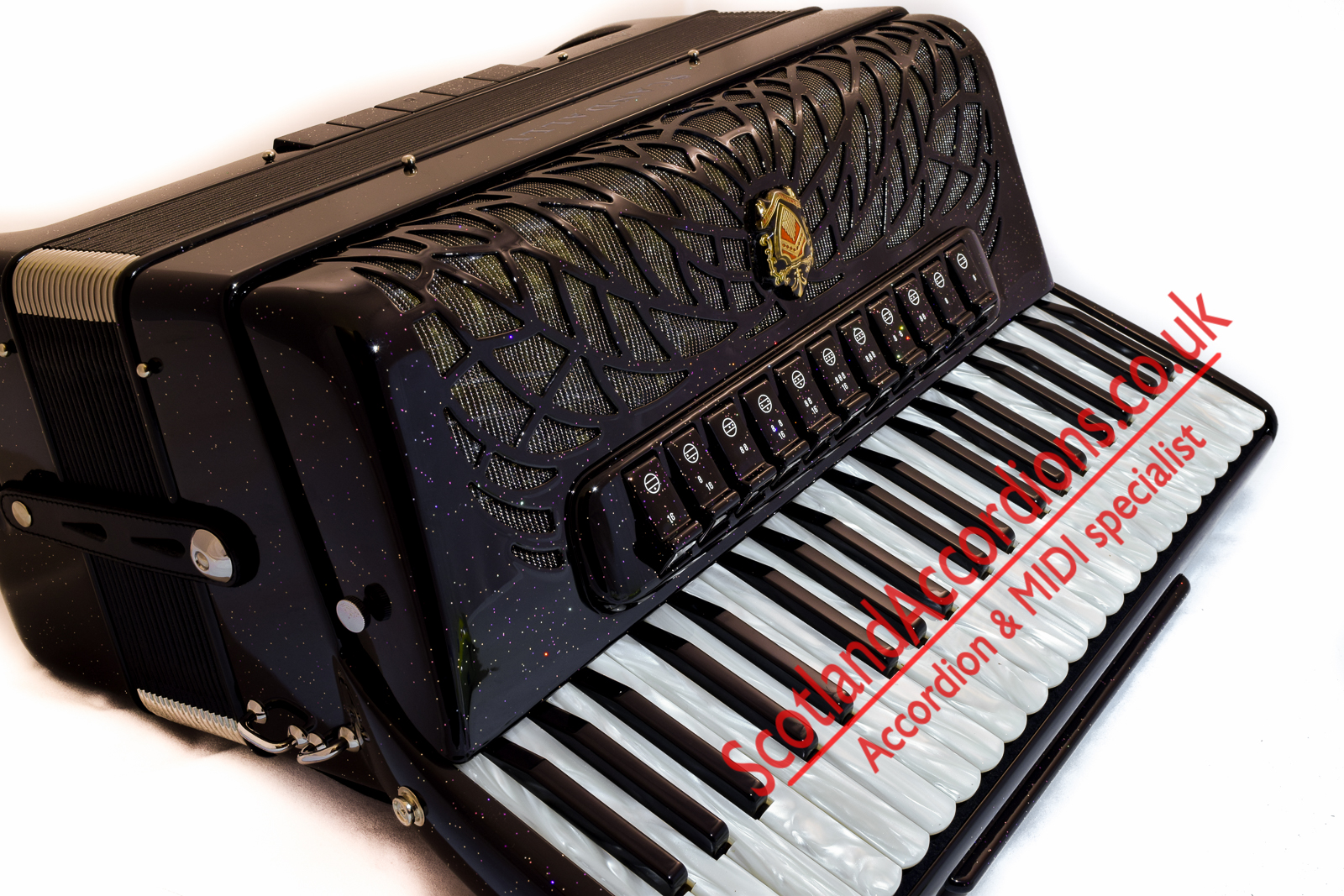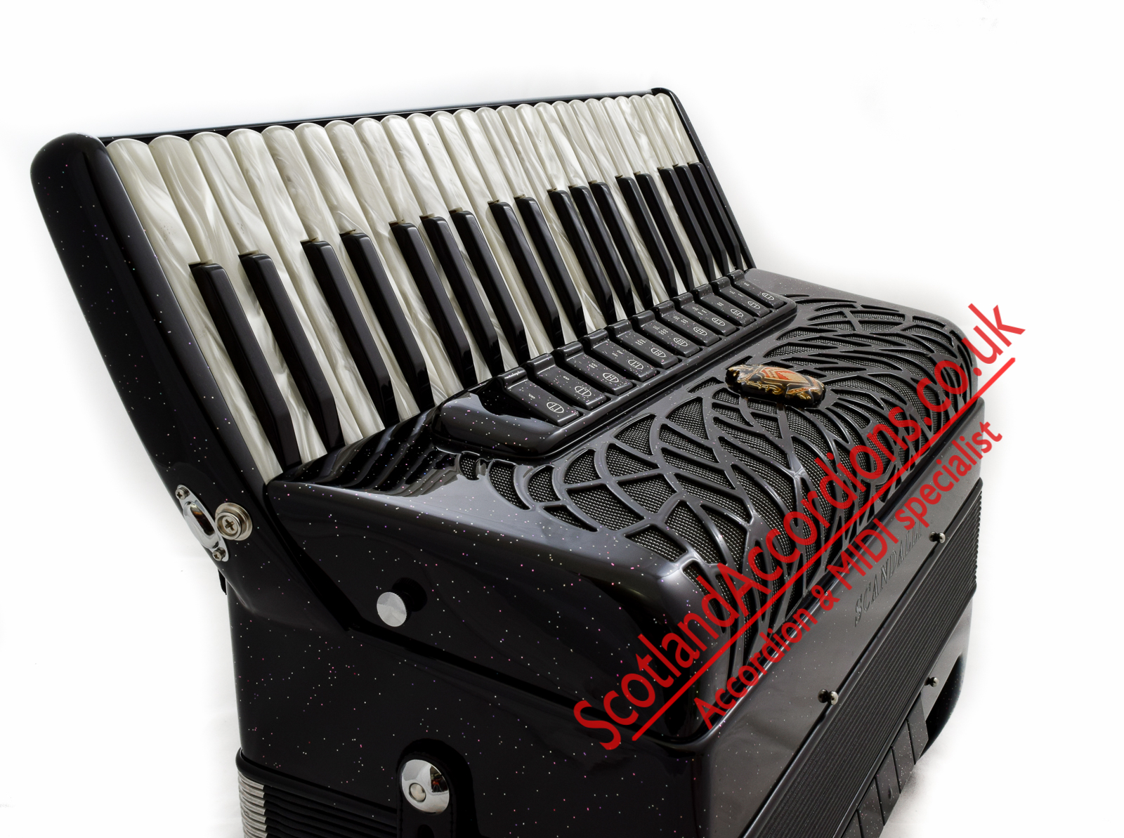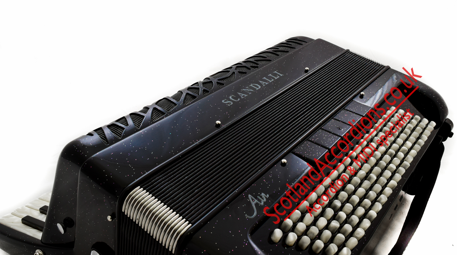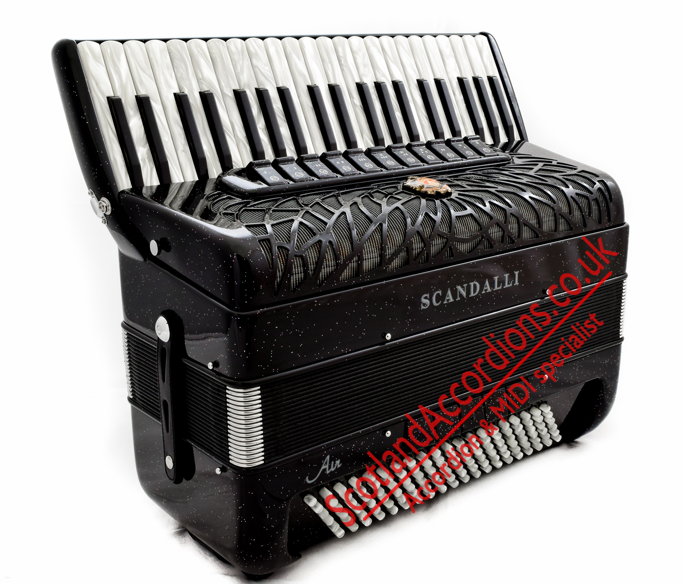 Scandalli Air I S 41 key 120 bass 4 voice black piano accordion with sparkle finish, Scottish musette