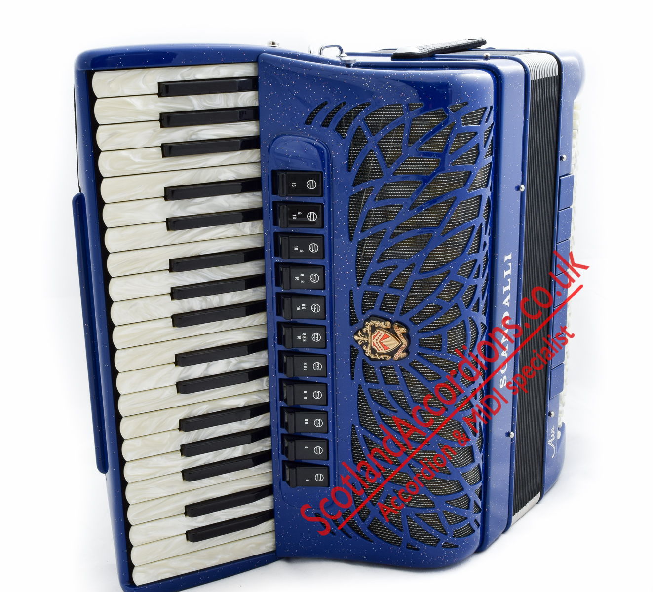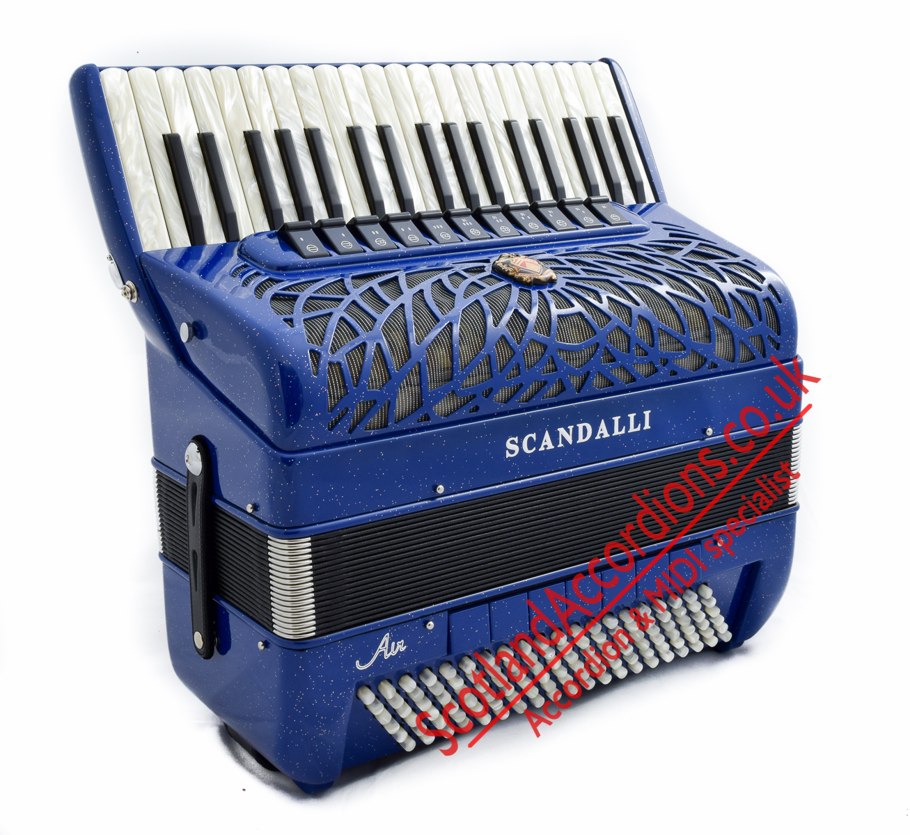 Scandalli Air III 37 key 120 bass 4 voice musette tuned blue cassotto piano accordion with sparkle finish